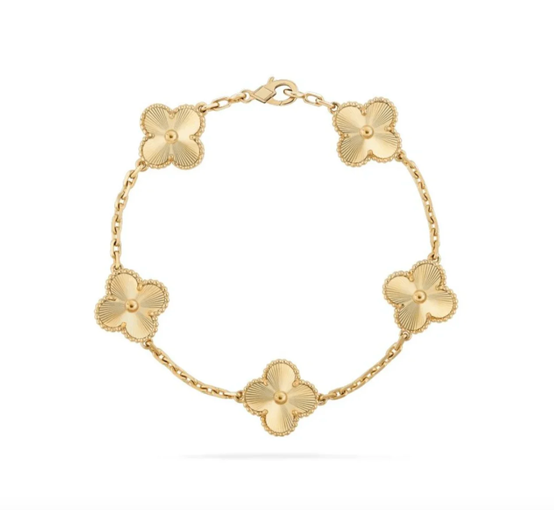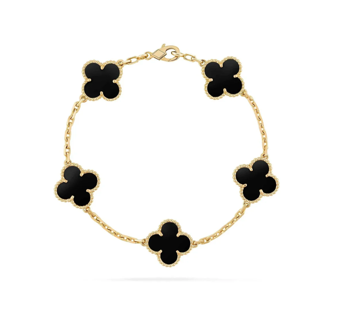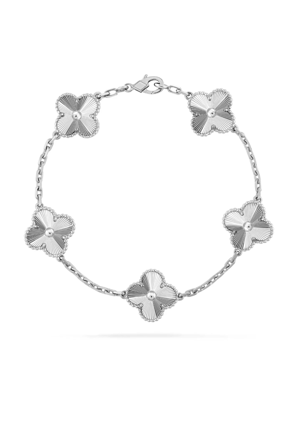 This elegant bracelet is the perfect simple statement for any outfit. Crafted from fine titanium stainless steel, Farah is coated in 18K gold plating and is waterproof and hypoallergenic. Featuring five four leaf clover pendants with dainty outline beads and sturdy lobster claw to close, she is the perfect elegant touch to add to any outfit. Layer up or wear on her own.